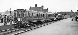 Die von der London, Brighton and South Coast Railway (LB&SCR) entwickelte Wendezugsteuerung, die mit Druckluft arbeitete,[6] ermöglichte den Einsatz von zwei Zwischenwagen zwischen der Lokomotive und den Steuerwagen, sodass sich die Lokomotive in der Mitte des Zuges befand. Noch in den 1950er Jahren verkehrten Züge mit sechs Wagen und einer Tenderlokomotive der LSWR-Klasse M7 in der Mitte des Zuges. Die als Autotrains bezeichneten Wendezüge, wurden von mehreren Bahnen im Vorortsverkehr von London und auf Nebenstrecken eingesetzt.[7]