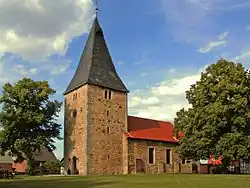 - Die evangelisch-lutherische Kirche St. Dionysius Areopagita ist benannt nach Bischof Dionysius Areopagita und befindet sich an der Straße Im Unterdorf. Ihre Kirchengemeinde gehört zur Propstei Königslutter.