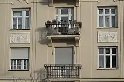 Der viergeschossige Eckbau im Stil des Neubarock wurde um 1910 errichtet. Das Haus ist reich mit Reliefs geschmückt.