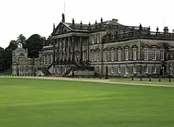 Wentworth Woodhouse ist ein Landhaus im Dorf Wentworth bei Rotherham in der englischen Verwaltungseinheit South Yorkshire. Das von English Heritage als historisches Gebäude I. Grades gelistete Haus diente als „einer der großartigen Whig-Paläste“.[1] Seine Ostfassade ist 184 Meter lang und damit die längste Fassade eines Landhauses in Europa.[2] Wentworth Woodhouse ist mit 23.000 Quadratmetern Wohnfläche[3] auch das größte Privathaus im gesamten Vereinigten Königreich.[4] Das Haus enthält mehr als 300 Zimmer, wobei einige die Zahl auf 365 schätzen, einen für jeden Tag des Jahres, auch wenn sich Experten über die genaue Zahl nicht einig sind. Das Haus hat eine Grundfläche von 1 Hektar und ist von einem Park auf dem 6100 Hektar großen Anwesen umgeben, das heute einem anderen Eigentümer gehört.