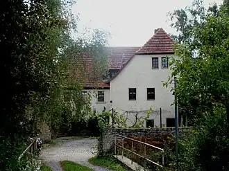 Den Mittelpunkt der Mühlenanlage bildet ein zweigeschossiger Halbwalmdachbau auf einem hakenförmigen Grundriss. Die Scheune daneben entstammt dem 18. oder 19. Jahrhundert.