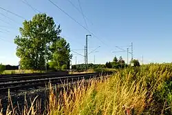 Die „Neumarker Spitze“, links die Gleise von Leipzig, rechts die von Dresden (2008)