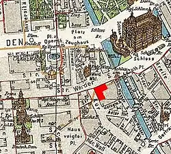 - im nördlichen Teil ursprünglich das Friedrichswerdersche Rathaus, das 1794 abbrannte und 1798–1800 durch einen Erweiterungsbau für die Preußische Münzprägeanstalt, die später so genannte Alte Münze, ersetzt wurde,