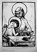 10-203 | Künstler-Fest St. Lukas | 1910 | Hans Brass | Postkarte in Privatbesitz | Wahrscheinlich Feder, Vorlage für Kunstpostkarte des Verlags Rudolf Brückner, Magdeburg als Einladung zum Künstlerfest St. Lukas in Magdeburg, 10. – 12. Februar 1910 | |||||||