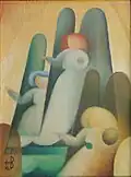 56-104 | Komposition Fantasie über ein Schaukelpferd | 1956 | Öl | Nessel | 60 | 90 | HB 4/56 | Privatbesitz | 54-419 | |||