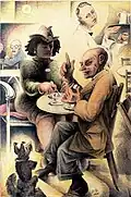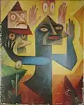 56-106 | Magisches Theater | 1956 | Öl | Nessel | 60 | 90 | HB 6/56 | Bunte Stube 1987, Wuhlgarten 2003, Wesel 2010, Marzahn 2010, Ahrenshoop 2019 | Privatbesitz. | 56-203, | ||