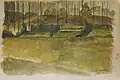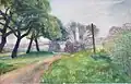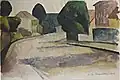54-435 | Am Dorfrand | 1954 | Aquarell | ca. 30 | 47 | H.Brass 1954 | Wuhlgarten 1954. | Privatbesitz | Auf dem Passepartout verso Am Dorfrand. Brass. 260,- DM. | |||