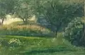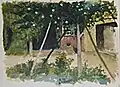 55-110 | Im Garten | 1955 | Öl | Nessel | 60 | 90 | HB 10/55 | Privatbesitz | Nach der Aquarellskizze 55-414 | |||