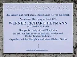 - ↑ Neuer Platz erinnert in Schmargendorf an den Komponisten Werner Richard Heymann, berlin.de, 14. Oktober 2020, abgerufen am 16. Oktober 2020.