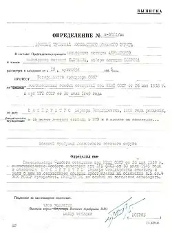 - ↑ Auszug, Beschluss Nr. N-30001/OS vom 19. September 1955 des Militärtribunals des Moskauer Gebiets (russ.), Nachlass W. Schneidratus.