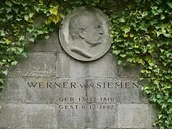 Am 6. Dezember 1892 erlag Werner von Siemens in Berlin einer Lungenentzündung. Er wurde auf dem Alten Luisenfriedhof in Charlottenburg beigesetzt und später in die Familiengrabanlage der Familie Siemens auf dem südwestlich von Berlin gelegenen Südwestkirchhof Stahnsdorf umgebettet.