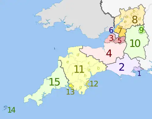 Die Region deckt sich in großen Teilen mit der historischen Gegend von Wessex (außer Hampshire und Berkshire) und schließt das ehemalige keltische Königreich Dumnonia ein, zu dem Cornwall, Devon und Teile von Somerset und Dorset gehörten. Nach 1974 erfolgte die Aufteilung in die Grafschaften Avon, Cornwall, Devon, Dorset, Gloucestershire, Somerset und Wiltshire. Nach der Verwaltungsreform 1996 erfolgte eine Neugliederung, wobei die Grafschaft Avon aufgelöst wurde und die übrigen Grafschaften nur noch einen zeremoniellen Status behielten.