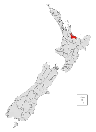 Der Western Bay of Plenty District ist seinerseits noch einmal in drei Wards eingeteilt, dem Kaimai Ward und dem Maketu - Te Puke Ward mit je vier Councillors (Ratsmitgliedern) und dem Katikati - Waihi Beach Ward mit drei Councillors. Zusammen mit dem Mayor (Bürgermeister) bilden sie den District Council (Distriktsrat).[9] Der Bürgermeister und die elf Ratsmitglieder werden alle drei Jahre neu gewählt.