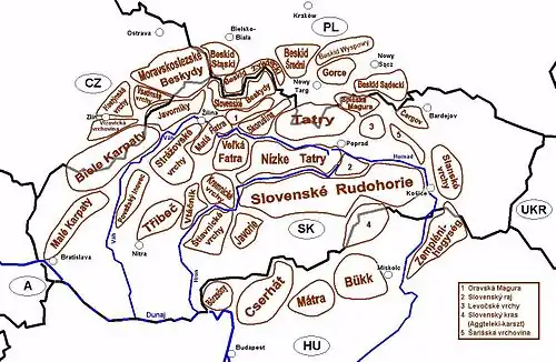 Bei den Westkarpaten ist die Unterscheidung zwischen den Äußeren Westkarpaten und den Inneren Westkarpaten wichtig. Näheres siehe unter Karpaten.