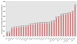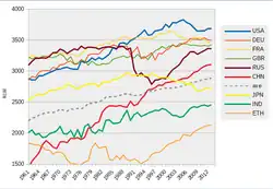 Die Industrialisierung der Ernährung führte die Entwicklung seit der zweiten Hälfte des 20. Jahrhunderts noch viel konsequenter fort. Heute machen in den Vereinigten Staaten raffinierte Getreide, raffinierte Zucker, raffinierte Pflanzenöle, Alkohol und Milchprodukte 70 % der gesamten Energiezufuhr eines Durchschnittsbürgers aus.[6] Industrialisierung, Globalisierung, die schnelle Ausdehnung der Fast-Food-Restaurants und Entwicklungen der Lebensmittelindustrie haben zum Entstehen und zur weltweiten Ausbreitung der Westlichen Ernährung geführt. Der Wandel von traditioneller zu westlicher Ernährung in Verbindung mit einem bewegungsarmen Lebensstil hat seit den 1960er Jahren zu einer starken Zunahme von Adipositas und Herz-Kreislauf-Erkrankungen geführt.[7] Bereits gegen Mitte des 20. Jahrhunderts fanden Forscher heraus, dass traditionell lebende Menschen in Entwicklungsländern und auch im Mittelmeerraum (traditionelle Mediterrane Ernährung) viel seltener unter Herzkrankheiten litten als Menschen in westlichen Ländern.[8]