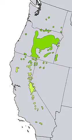 Der Schwerpunkt des Verbreitungsgebietes des Westamerikanischen Wacholders liegt in den sehr trockenen Steppen des mittleren und südlichen Oregons. Den nördlichsten Punkt des natürlichen Vorkommens bilden isolierte Kleinvorkommen im mittleren und südlichen Washington. Die Ostgrenze bildet eine ebenfalls isolierte Population im äußersten Südwesten Idahos. Die Südgrenze verläuft durch das im nördlichen Kalifornien gelegene Lassen County und den Norden Nevadas. Sein Verbreitungsgebiet überlappt sich mit dem des Rocky-Mountain-Wacholders (Juniperus scopulorum).