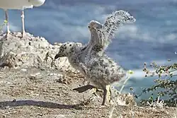 Die Jungvögel bleiben im Nest bzw. in dessen unmittelbarer Nähe, bis sie nach etwa 40 bis 50 Tagen flügge sind. Während der nächsten drei Monate kehren sie immer wieder zum Nest zurück. Oft werden herumstreunende Jungtiere von Möwen der angrenzenden Brutreviere getötet. Elternlose Küken werden hingegen manchmal von anderen Paaren angenommen.