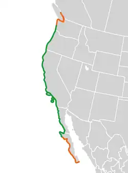 Die in Zentralkalifornien zwischen Point Reyes und Point Conception beheimatete Population umfasste in den späten 1970er Jahren rund 17.000 Brutpaare[48] und nahm bis in die 1990er Jahre – vermutlich infolge von ENSO-Phänomenen – auf rund 14.000 Paare ab.[49] Die im Süden Kaliforniens – also südlich von Point Conception – beheimatete Population vergrößerte sich im selben Zeitraum von rund 5.500 auf etwa 14.000 Brutpaare.[49]