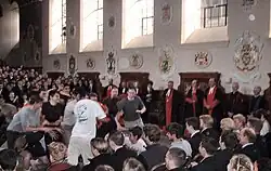 - Die Schule hat verschiedene Bräuche, unter anderem das Greaze, das am Aschermittwoch seit 1753 stattfindet. Dabei wirft der Chefkoch einen mit Pferdehaaren verstärkten Pfannkuchen, um den dann eine Minute lang einige Schüler kämpfen.[14]