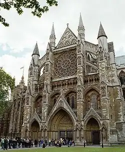Die Westminster-Abtei (englisch Westminster Abbey, eigentlich Collegiate Church of Saint Peter at Westminster) ist eine Kirche in der britischen Hauptstadt London. Sie befindet sich in der City of Westminster westlich des Palace of Westminster. Der gotische Sakralbau wurde 1245 auf Befehl von Heinrich III. begonnen. Traditionell werden in der Westminster-Abtei die Könige von England (heute: Könige von Großbritannien und Nordirland) gekrönt; bis 1760 wurden die meisten auch hier beigesetzt. Die Stiftskirche des Kollegiatstifts Saint Peter at Westminster gehört zur Church of England, ist aber aufgrund ihrer Funktion keiner Diözese zugehörig, sondern Eigenkirche (royal peculiar) der britischen Monarchie, vergleichbar mit exempten Klöstern in der römisch-katholischen Kirche. Daher wird ihr oberster Geistlicher, der Dekan von Westminster, direkt vom britischen Monarchen berufen. 2019 wurde die Westminster Abbey von rund 1,57 Millionen Personen besucht.[1] 2024 betrug die Besucherzahl etwa 1,72 Millionen Personen.[2]