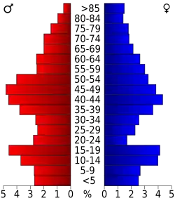 Auf das gesamte County bezogen setzte sich die Bevölkerung zusammen aus 24,10 % Einwohnern unter 18 Jahren, 7,40 % zwischen 18 und 24 Jahren, 26,30 % zwischen 25 und 44 Jahren, 26,70 % zwischen 45 und 64 Jahren und 15,60 % waren 65 Jahre alt oder darüber. Das Durchschnittsalter betrug 41 Jahre. Auf 100 weibliche Personen kamen 103,10 männliche Personen, auf 100 Frauen im Alter ab 18 Jahren kamen statistisch 103,80 Männer.