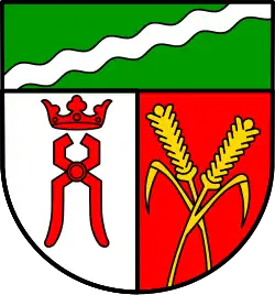 | Wappenbegründung: Der Wellenbalken im Schildhaupt versinnbildlicht den Fluss Prüm und die Zange und Krone nehmen Bezug auf die Kirchenpatronin, St. Agatha, während die Ähren auf die landwirtschaftliche Struktur der Gemeinde hinweisen. |