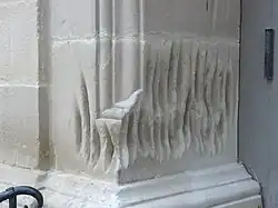 - romanische Außenpfeiler der Pfarrkirche St. Jakob in Přelouč in Ostböhmen – der dortige Wetzrillenbestand ist sehr umfangreich, außerdem dort sehr umfangreiche Felder von näpfchenförmigen Einkerbungen.