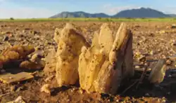 Selenit-Kristalle auf einem Gewässergrund, die als meterstarkes Sediment wahrscheinlich das Ausgangsmaterial für den Gipssand waren.[1][3][4]