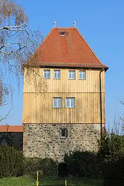 Am westlichen Rand der Siedlung befindet sich der Turmspeicher aus dem 15. Jahrhundert. Das wehrhafte Speichergebäude besitzt zwei massive Sockelgeschosse und darüber zwei bemerkenswert gestaltete Fachwerk-Obergeschosse, die jedoch inzwischen mit Holz verkleidet sind.