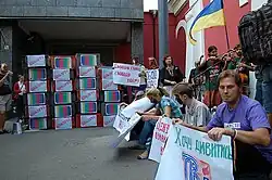 - ↑ Активісти Євромайдану вчора пікетували «Епіцентр» на Воскресенці. ФОТО ( vom 7. November 2017 im Internet Archive). Ні корупції. 3. Februar 2014