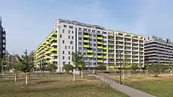 Durch den Abriss des Südbahnhofs, die Entfernung alter Gleisanlagen, die Absiedlung des Frachtenbahnhofs und die schlankere Anordnung des neuen Bahnhofs entstanden große Freiflächen.[62] Von der Gesamtfläche des alten Bahnhofsareals, 109 Hektar, entfallen nunmehr etwa 50 Hektar auf den neuen Bahnhof samt Zufahrtsgleisen, etwa 25 Hektar auf das Quartier Belvedere und etwa 34 Hektar auf das Sonnwendviertel.