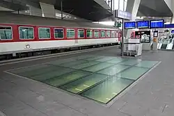 - Die Bahnsteige 5 und 6 (420 m) sowie die Bahnsteige 11 und 12 (450 m)[8] dienen auch den von und zu der Pottendorfer Linie verkehrenden Zügen