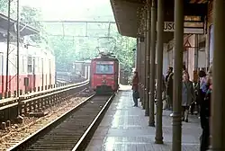 Die Wiener Elektrische Stadtbahn,[6] abgekürzt WESt, W.E.St., Wr.-E.-St. oder W.E.ST., im Volksmund kurz Stadtbahn genannt,[7] war ein öffentliches Nahverkehrsmittel in der österreichischen Hauptstadt Wien, das unter dieser Bezeichnung von 1925 bis 1989 existierte. Das anfänglich noch als Eisenbahn klassifizierte System ging aus der 1898 eröffneten, von Otto Wagner gestalteten und mit Dampflokomotiven betriebenen ursprünglichen Wiener Stadtbahn hervor, die teilweise auch Vororte bediente.