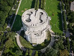 - Esterházypark: 1969 wurde eine Umwandlung zur Parkgarage ventiliert.[16] Seit dem Anfang der 1990er-Jahre setzte sich vor allem die Kronen Zeitung für massive Aufstockungen ein – bisher allerdings vergeblich. Ein Hochhausprojekt auf dem Esterhazy-Flakturm wurde bereits Anfang der 1990er-Jahre propagiert.[17] Ein ähnliches Projekt wurde von der „Krone“ am 28. Februar 2000 und am 2. August 2000 vorgestellt.[18] Im März und April 2003 propagierte die „Krone“ unter ihren Lesern einen Ideenwettbewerb zum Thema Flaktürme, der Bericht darüber erfolgte erst am 22. Jänner 2004. 2007 wurde der Architekt Wolf Prix mit einem ähnlichen Projekt in Verbindung gebracht. Es kam aber, laut Die Presse vom 1. Oktober 2007, wieder zu einer „Abfuhr“.[19]