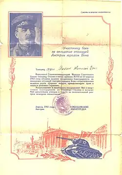 Als Wiener Operation 1945 oder Schlacht um Wien werden die Kämpfe zwischen der Roten Armee und der deutschen Wehrmacht in Wien und dem Wienerwald vom 16. März bis 15. April 1945 bezeichnet. Der Kampf im Stadtgebiet dauerte vom 6. bis 13. April.
