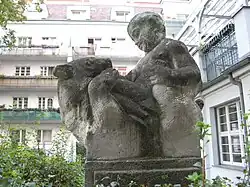 Der ältere Teil der Wohnhausanlage wurde 1926/27 von den Architekten Rudolf Frass, Rudolf Perco und Karl Dorfmeister errichtet. Im zur Straßen hin offenen Innenhof befinden sich zwei Plastiken Knabe mit Bär und Mädchen mit Gänsen von Wilhelm Hejda (1929).