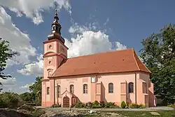 - Die barocke St.-Michaels-Kirche (Kościół św. Michała Archanioła) wurde 1766 errichtet. Der älteste noch erhaltene Grabstein in der Kirchenmauer stammt aus dem Jahr 1595.[5] 1966 wurde die Kirche unter Denkmalschutz gestellt.[6]