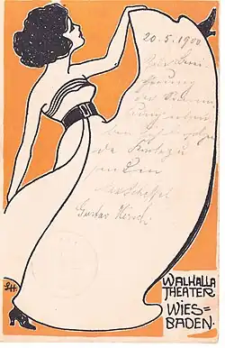 Ludwig Hohlwein (Wiesbaden 1874-1949 Berchtesgaden) war einer der bedeutendsten und einflussreichsten Werbegestalter des 20. Jahrhunderts. Der gebürtige Wiesbadener erhielt die ersten Aufträge in seiner Heimatstadt (Plakat für den Kunstsalon Banger (vor 1898) und Werbepostkarten für das Walhalla Theater (um 1900)), bevor er nach München übersiedelte und dort Karriere machte. Er blieb Wiesbaden jedoch weiterhin verbunden, gestaltete für hiesige Unternehmen Werbelinien und für die Stadt drei berühmte Werbeplakate (1926 Frühling in Wiesbaden, 1927 Frühling in Wiesbaden sowie Herbst in Wiesbaden).