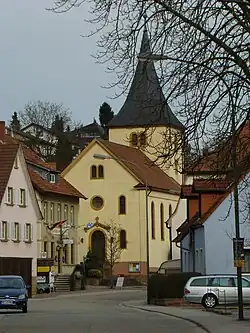 Die katholische Kirche St. Michael gegenüber der evangelischen Kirche wurde um 1740 auf den Grundmauern der einstigen Klosterkirche St. Georg aus dem 12. Jahrhundert errichtet. Ein baulicher Überrest der Klosterkirche ist die mit Kies verfüllte Krypta unter dem Chor. Das längs der Hauptstraße stehende alte Hauptschiff stammt wie das benachbarte Pfarrhaus im Wesentlichen aus der Zeit des Barock und wurde 1977/81 um einen größeren seitlichen Anbau und ein Gemeindehaus ergänzt.