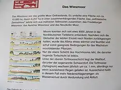 Der Großteil des Gebiets der heutigen Stadt Wiesmoor sowie angrenzende Teile von Nachbargemeinden waren bis zu Beginn des 20. Jahrhunderts unwegsames Hochmoorgebiet, das sich als Ostfriesisches Zentralhochmoor auf einer Fläche von 241 Quadratkilometern ausdehnte. Das heutige Stadtgebiet blieb lange völlig unbesiedelt, selbst Wege in der frühgeschichtlichen Zeit werden bislang nur vermutet.[9] Eine Besonderheit ist somit, dass die ersten dauerhaften Siedlungen erst in der zweiten Hälfte des 18. Jahrhunderts entstanden. Eine weitere Besonderheit besteht darin, dass die heute an der Peripherie gelegenen Ortsteile die ersten waren, die besiedelt wurden, während der heutige Stadtkern eine der jüngsten Siedlungen in dem Moorgebiet ist.