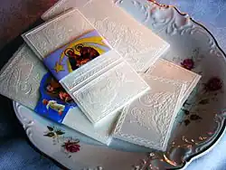 Die Familienmitglieder beginnen die Feier mit einem Gebet.[3] Danach wird eine Weihnachtsoblate (sie ähnelt in der Konsistenz einer Hostie) in Stücke gebrochen und an die verschiedenen Familienmitglieder verteilt. Dann bricht jedes Familienmitglied jeweils etwas von der Weihnachtsoblate jedes anderen Anwesenden ab und teilt somit sein Oblatenstück mit den anderen Familienmitgliedern als Zeichen der Liebe, Versöhnung, Freundschaft und des Friedens, wobei man sich gegenseitig viel Glück und Freude für das nächste Jahr wünscht, da Christus geboren wurde.[2][3][5] In die Weihnachtsoblate sind meist das Jesuskind, die Jungfrau Maria und Engel geprägt.[4] Diese Oblaten werden auch an Freunde und Verwandte in der ganzen Welt verschickt, um sie an dieser Tradition teilhaben zu lassen.[1] Danach gibt man sich oft einen Kuss auf die Wange. Das gemeinsame Brechen der Weihnachtsoblate, die Brot symbolisiert, bezieht sich auf die uralte christliche Tradition des Brotbrechens. In religiösen Familien wird dann aus der Bibel die Geschichte von der Geburt Jesu gelesen.[1]