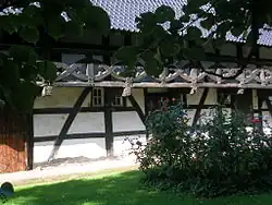 Eine Besonderheit ist der Stall. Seine Fachwerkhofseite von 1655 besitzt noch die originale weit vorgekragte hölzerne Galerie.