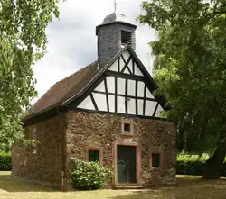 Das kleine Gebäude ist ein massiver Bruchsteinbau mit einem Fachwerkgiebel. Chor und Dachreiter wurden in Polygonform errichtet. An die rechte Außenseite der Kapelle wurden vier alte Sühnekreuze aus Stein vom Aschaffenburger Weg versetzt und hier angebracht. Sie sind Mahnmale vergangener Zeiten (14. Jhdt.).