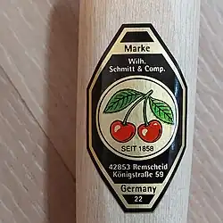 Unternehmensgründer Wilhelm Schmitt ließ die „doppelte Kirsche“ 1865 beim Königlichen Gewerbegericht zu Remscheid in die Zeichenrolle eintragen und in den 1880er Jahren folgten zwei weitere Eintragungen ins Markenregister: Eine Handbügelsäge[4] sowie ein aufrecht stehender, nach links gewandter Löwe, der ein stehendes Zahnrad hält.[4] Laut eines Firmenkataloges aus dem Jahr 1905 stand die Marke „Kirschen“ damals für Waren der ersten Qualitätsstufe, während der Löwe mit Zahnrad Produkte zweiter Qualität kennzeichnete.[4] Am 1. Februar 1907 erfolgte die Registrierung der Wort-Bild-Marke „Nero“,[3] die später wieder aufgegeben und zum 1. Mai 2006 gelöscht wurde.