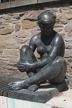 - Bronzeskulptur Die Sinnende, auf dem Platz neben dem Alten Rathaus[3]