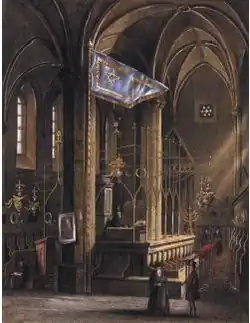 - Mariä Krönung, Hochaltarbild der gleichnamigen Klosterkirche des ehemaligen Kapuzinerkloster in Saaz/Žatec