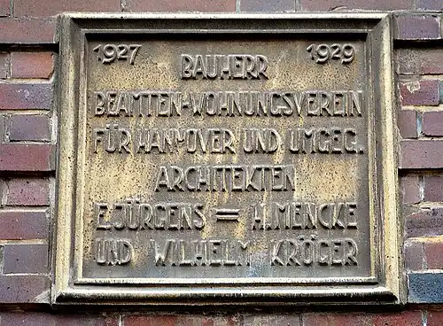 - 1928: bauliche Ergänzungen der zwischen 1906 und 1907 für den Spar- und Bauverein Hannover-Buchholz errichteten Gebäudekomplexe[12]