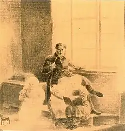 - Selbstbildnis mit Kindern. Tuschezeichnung mit Feder und Blei