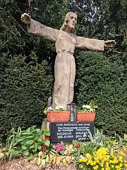Bereits 1945 hatte Maucher als Dank für die Errettung aus Kriegsnöten am sog. „Heiligen Grab“ oberhalb von Alfter die vom Bonner Bildhauer Jakobus Linden geschaffene Statue des „Segnenden Christus“ aufstellen lassen. Ihr fügte er in der Folgezeit für Gerechtigkeit und Toleranz werbende Inschriftsteine bei. Im Jahre 1978 ergänzte er die Anlage um zehn entlang des steilen Zuwegs verlegte „Gebotssteine“, mit denen er die Politiker zu Frieden, Menschlichkeit und Umweltschutz mahnte. Er schuf damit den zwischen dem Alfterer jüdischen Friedhof und dem Ausflugslokal „Heimatblick“ verlaufenden sogenannten „Friedensweg“. Die drohende Beseitigung dieser Anlage, mit der Wilhelm Maucher die Überzeugungen und Erfahrungen seines langen Lebens der Nachwelt zu vermitteln trachtete, konnte im Herbst 2009 dank einer orts- und parteienübergreifenden Initiative verhindert werden. Nach Auflassung seiner Grabstätte im Jahr 2020 wird sie vom Arbeitskreis Friedensweg als Gedenkort gestaltet. Grundlage ist eine Verwaltungsvereinbarung zwischen Wilhelm Maucher und der Gemeindeverwaltung von 24. August 1992.[1]