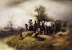 Wilhelm Alexander Meyerheim wirkte als Maler und Lithograf, überwiegend in Berlin.[2] Auf dortigen akademischen Kunstausstellungen ist er seit 1843 greifbar. Meyerheim bevorzugte spätromantische Motive aus dem Volksleben. Gerne zeigte er romantische Stadtansichten und Landschaftsmotive an Flüssen, die er häufig mit der Darstellung von Pferden, Reitern, Kutschern, Bauern und Soldaten ausgestaltete.